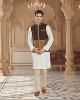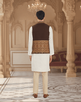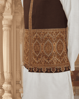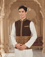 Featuring a brown base bandi jacket with golden palla embriodery.
