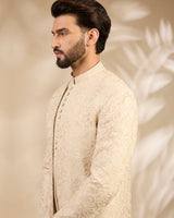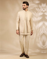 Ivory Textured Embroidered Bandhgala Set