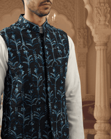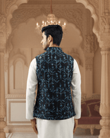 Featuring a black cotton base bandi jacket with wool ari embriodery