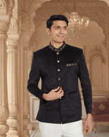 Black Suede Velvet Bandhgala