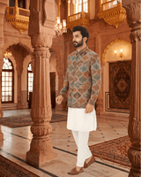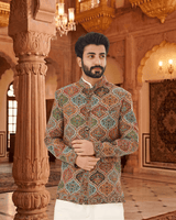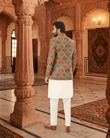 Featuring a multi color jamawar weaved bandhgala